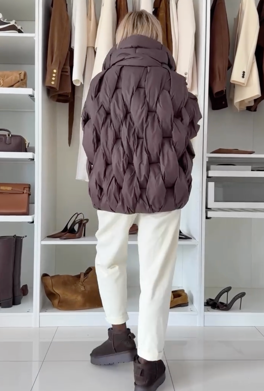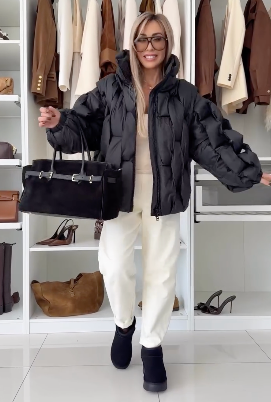 Cette doudoune noire spectaculaire à col montant offre une coupe oversize tendance et des manches volumineuses. C'est la pièce idéale pour rehausser n'importe quelle tenue d'hiver avec une touche mode. 😎❄️🔥